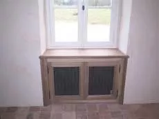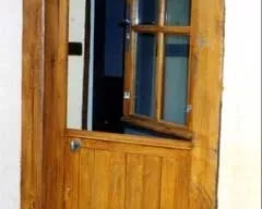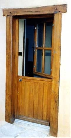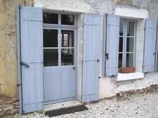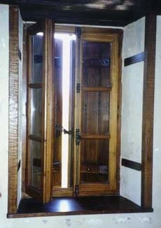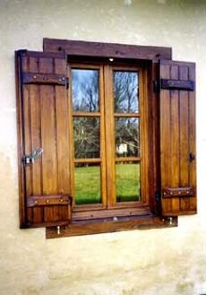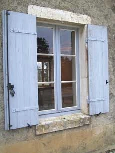 Menuiserie à l'ancienne en 36 mm. Simple vitrage et solin de mastic noix, mouton et gueule de loup.